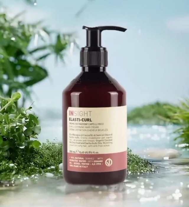 La fórmula de la Crema modeladora para cabellos rizados de Insight contiene aceite ecológico de coco, aceite de semillas de chía y aceite de sacha inchi, que dejan el cabello suave e hidratado, listo para el siguiente paso.. deja el cabello rizado y ondulado elástico, nutrido y luminoso.